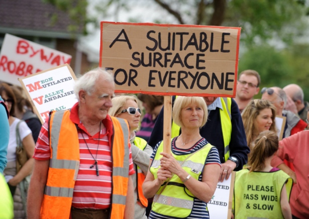 The work on the line has drawn a lot of attention with both the high cost and the end result being viewed differently, depending on your point of view. I have to compliment some of the slogans, “Byway Robbery” and “Valley Vandalised” that have been used at the public meetings, however, there were no picket lines for the 25 of us to cross today, we were simply enjoying a run in the country. The car park was our meeting point.