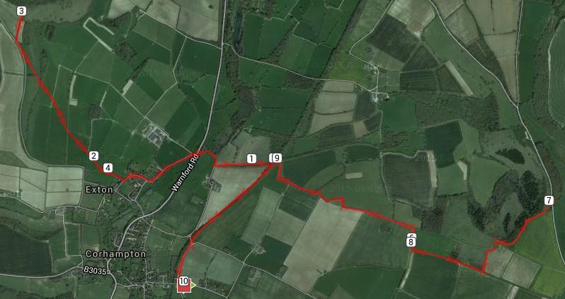 As we left the Meon Hall, Meonstock, at 7.30am it was a dull overcast morning with the promise of rising temperatures to come. To begin with there was the usual banter between everyone as we all caught up with what we’d been doing recently and the fact that Mark turns 50 soon so he would join me and Paul as “Saga” runners. Our route joined the Old railway line via a flooded road so it was wet shoes after less than a mile and soon we were at the South Downs Way (SDW) sign for Exton, following a narrow path where we encountered our first mud of the day.