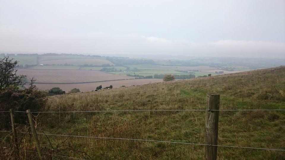 It’s funny how even a relatively short stop can make your legs feel stiffer so we agreed we’d concentrate our efforts on the two remaining hills and take the rest steadier. Beacon Hill was again a challenge with more cows to negotiate and the legs were definitely starting to protest. The track is quite narrow and the clumpy soft grass adds to the climb. Trig point reached that just left one more hill. The weather was starting to clear now and we both marvelled how great it was to be out in the country for most of the morning.