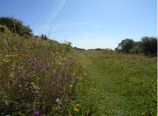 Reaching the trig point I turned and took a photo of the gate that marks the end of the climb, a symbolic wodden structure that you pass through when you’ve scaled your first objective. The remaining miles out to Holden Farm gave me wild flowers of many colours and a number of brief encounters with mountain bikers, walkers and a horse rider.